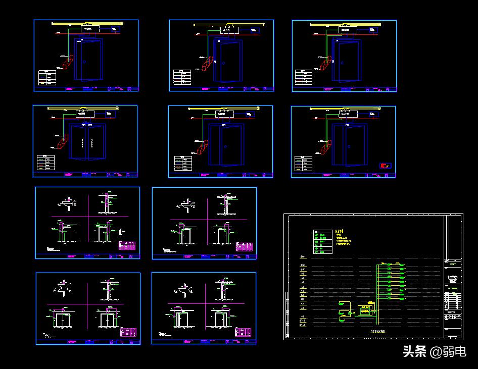 门禁系统图汇合,关于门标系统这块也是弱电中很重要的一部分,除了门禁方案就是系统图纸,也是很多弱电朋友多次问到过的,门禁的图纸设计一般也不难,主要是施工图与安装图比较多,那么本期我们更新了这份门禁系统图,方便弱电人在做门禁项目的时候可以直接使用参考,图纸图比较全,共有12个图,从不同的角度来详解门禁系统图的施工。 标签: 门禁系统有哪些